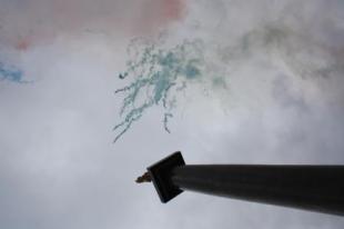 Серое небо взрывает бело-сине-красный фейерверк. Это мирная и праздничная канонада. Хочется верить, что и впредь на этой благодатной земле, на которой живут добрые и трудолюбивые люди, тишина будет взрываться только в праздники и только красочными фейерверками.