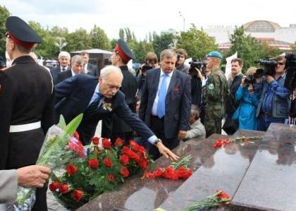 Торжественно разрезается ленточка и стела «Город воинской славы» в Старом Осколе открыта. Объявляется минута молчания. Дети выпускают в по-осеннему хмурое сентябрьское небо десятки белых голубей. Участники церемонии возлагают венки к открытой стеле. Белгородские и старооскольские коммунисты и комсомольцы возлагают гвоздики к памятнику четырежды Герою Советского Союза, маршалу Г.К. Жукову и бюстам Героев Советского Союза старооскольцев.
