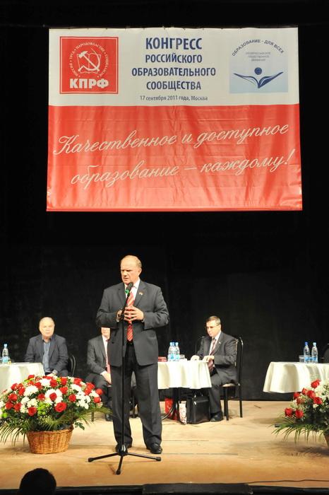 17 сентября в Москве прошел Конгресс российского образовательного сообщества. Он был организован Коммунистической партии Российской Федерации и Общероссийским общественным движением «Образование для всех». В работе форума принял участие Председатель ЦК КПРФ Г.А. Зюганов.