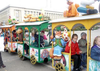 Небольшой сюрприз коммунисты приготовили для детей и их родителей. В течение двух часов малыши смогли совершенно бесплатно прокатиться на детском паровозике с коммунистической атрибутикой, курсирующем по площади В.И. Ленина. Чиновники из областного правительства, наверное, с ума посходили, увидев флаги КПРФ и СССР под своими окнами.