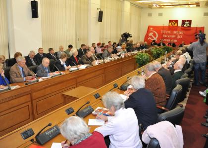 В начале заседания Г.А. Зюганов вручил почетные грамоты ЦК КПРФ группе ветеранов, принявших активное участие в сборе подписей в поддержку законопроекта «О копии знамени Победы». На сегодняшний день в Москве собрано около 10 тысяч подписей. Большим тиражом 120 тысяч экземпляров издана тематическая газета «Правда Москвы», посвященная законопроекту «О копии знамени Победы».