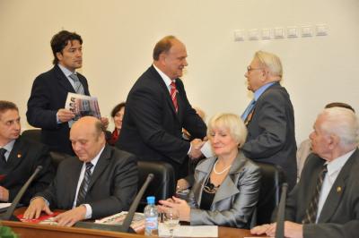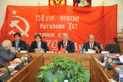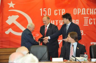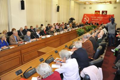 В начале заседания Г.А. Зюганов вручил почетные грамоты ЦК КПРФ группе ветеранов, принявших активное участие в сборе подписей в поддержку законопроекта «О копии знамени Победы». На сегодняшний день в Москве собрано около 10 тысяч подписей. Большим тиражом 120 тысяч экземпляров издана тематическая газета «Правда Москвы», посвященная законопроекту «О копии знамени Победы».