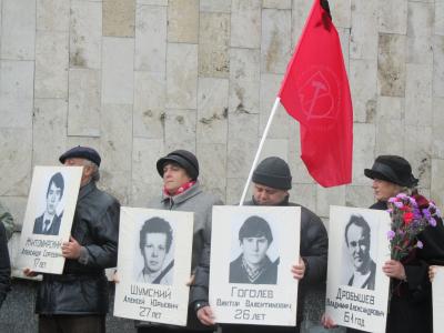 Коммунисты и сторонники партии, а также просто неравнодушные люди пришли почтить память погибших. Во время панихиды люди держали в руках портреты убитых демонстрантов. Пришедшие возложили цветы к Памятному Кресту, установленному после трагических событий.