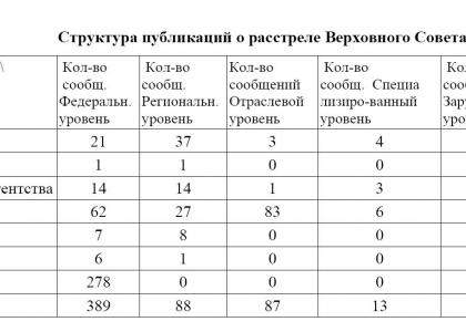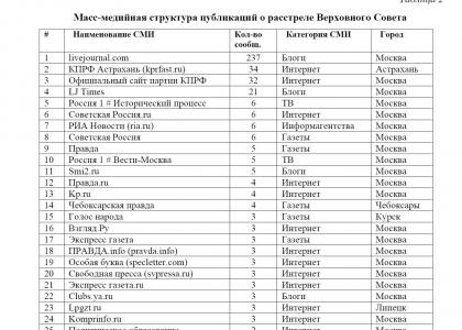 Масс-медийная структура публикаций о расстреле Верховного Совета