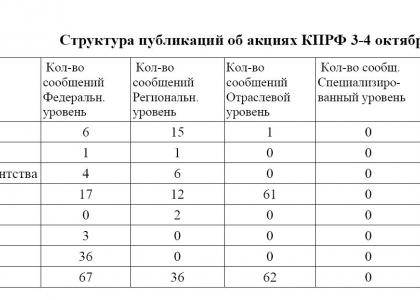 Масс-медийная структура публикаций об акциях КПРФ 3-4 октября