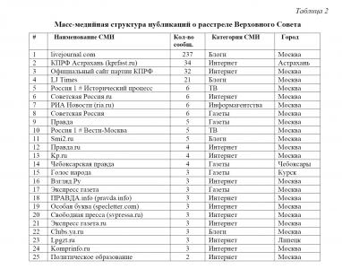 Масс-медийная структура публикаций о расстреле Верховного Совета