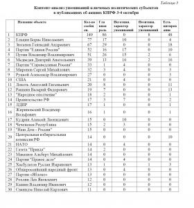 Контент-анализ упоминаний различных политических субъектов в публикациях о расстреле Верховного Совета дан в табл.5.