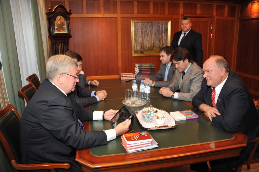 Во встрече приняли участие член Президиума, секретарь ЦК КПРФ Д.Г. Новиков, член Президиума, секретарь ЦК КПРФ Ю.В. Афонин, руководитель фракции КПРФ в Московской городской думе А.Е. Клычков и руководитель пресс-службы ЦК КПРФ А.А. Ющенко.
