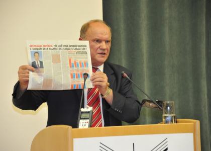 Встречу открыл ректор МГИМО Анатолий Васильевич Торкунов. Он представил гостя, рассказал, что Геннадий Андреевич Зюганов – не только один из ведущих российских политиков, но и ученый, доктор философских наук. Затем слово было предоставлено лидеру КПРФ.