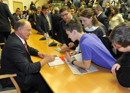 Геннадий Андреевич - частый гость одного из ведущих вузов страны. Студенты и преподаватели МГИМО всегда с огромным интересом ждут встречи с лидером КПРФ. Визит 13 октября не стал исключением –зал была переполнен.