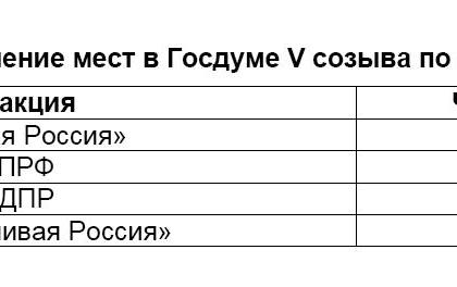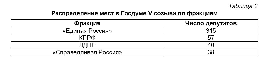 Там же, где достигнута определенность электоральных намерений, шансы партий с учетом коэффициентов ошибки, выведенных на основании сравнения прогнозов выборов в Государственную Думу 2007 г., составленных в то время социологическими службами, и данных Центральной избирательной комиссии (табл. 1), выглядят следующим образом (разброс в прогнозах ФОМа и ВЦИОМа на этот раз, по крайней мере по ряду позиций, оказался довольно-таки заметным). КПРФ может рассчитывать на поддержку 23-28% голосов избирателей, то есть от почти пятой части до более чем четвертой части электората. В итоге в новом составе Государственной Думы коммунисты могут получить от 103 до 129 мандатов, то есть приращение представительства КПРФ может составить от 46 до 72 мандатов. Такая выраженная положительная динамика электорального рейтинга партии весьма примечательна с учетом того, что ее условия ведения избирательной кампании не слишком благоприятны: например, в информационном пространстве присутствие КПРФ значительно уступает присутствию партии власти, засилье которой в средствах массовой информации в самый канун выборов имеет едва ли не тотальный характер.