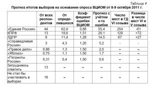 Прогноз итогов выборов на основании опроса ВЦИОМ от 8-9 октября 2011 г.