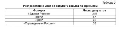 Там же, где достигнута определенность электоральных намерений, шансы партий с учетом коэффициентов ошибки, выведенных на основании сравнения прогнозов выборов в Государственную Думу 2007 г., составленных в то время социологическими службами, и данных Центральной избирательной комиссии (табл. 1), выглядят следующим образом (разброс в прогнозах ФОМа и ВЦИОМа на этот раз, по крайней мере по ряду позиций, оказался довольно-таки заметным). КПРФ может рассчитывать на поддержку 23-28% голосов избирателей, то есть от почти пятой части до более чем четвертой части электората. В итоге в новом составе Государственной Думы коммунисты могут получить от 103 до 129 мандатов, то есть приращение представительства КПРФ может составить от 46 до 72 мандатов. Такая выраженная положительная динамика электорального рейтинга партии весьма примечательна с учетом того, что ее условия ведения избирательной кампании не слишком благоприятны: например, в информационном пространстве присутствие КПРФ значительно уступает присутствию партии власти, засилье которой в средствах массовой информации в самый канун выборов имеет едва ли не тотальный характер.