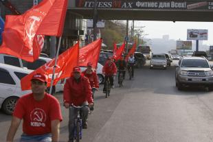 23 октября во Владивостоке кандидаты от КПРФ в Законодательное Собрание Приморского Края устроили агитационный велопробег протяжённостью более 20 километров - через весь город. В нем приняли участие кандидаты по первому, второму, третьему и шестому округу: Анатолий Долгачёв, Андрей Галицких, Артём Самсонов и Светлана Колотова (вчетвером на последнем фото), а также 2 молодых коммуниста - Евгений Слинько и Павел Ильницкий.