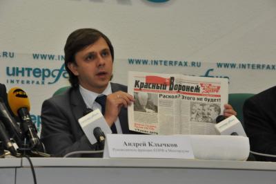 Затем депутат рассказал о клеветнических изданиях, направленных против КПРФ, выпущенных в ряде регионов. Он продемонстрировал журналистам один из образчиков такой «черной агитации», распространенный в Воронеже. «Эта газетенка издана якобы от имени КПРФ, в ней излагается информация, противоречащая нашим программным установкам», - пояснил А.Е. Клычков. Затем он показал цветную листовку, выпущенную в Ленинградской области якобы от имени «Справедливой России», с клеветническими материалами про Компартию и такую же газетенку якобы от имени «Трудовой России». Эта «чернуха», по словам депутата-коммуниста, распространяется по всей стране огромными тиражами.