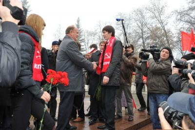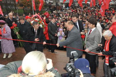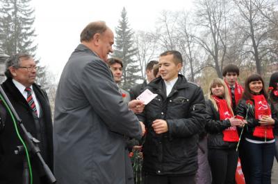 Затем Геннадий Андреевич посетил Башкирский реском Компартии и принял участие в открытие памятника В.И. Ленину в центре Уфы. Этот исторический монумент – первый из установленных в стране – был отреставрирован и после долгого отсутствия возвращен на свое исконное место. В ходе торжественной церемонии, собравшей сотни людей, Г.А. Зюганов и лидер ЛКСМ Ю.В. Афонин вручили комсомольские билеты юным жителям Башкирии. Пламенную песню «И вновь продолжается бой!» исполнил Народный артист России В.П. Овсянников.