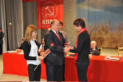 В начале мероприятия заслуженным башкирским ученым были вручены памятные медали ЦК КПРФ «В честь 300-летия М.В. Ломоносова». Молодым коммунистам Г.А. Зюганов вручил партийные билеты.
