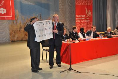 - По Ленинскому и Сталинскому призывам, - сказал, обращаясь к участникам встречи, Геннадий Андреевич, - в Коммунистическую партию пришло 30 тысяч в основном молодых людей, которые увидели, что собой представляет спекулятивный бандитский капитализм. Они идут в партию для того, чтобы бороться за справедливость, народовластие и социализм. Только на выборах в качестве наблюдателей и членов комиссий с решающим и совещательным голосом будут работать 100 тысяч молодых людей, которые все сделают, чтобы защитить ваши голоса.