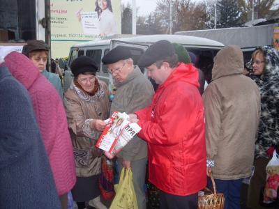 4 ноября на областной ярмарке по продаже сельзохпродукции на площади Революции (Театральной) в Саратове коммунисты развернули агитационную работу по пропаганде идей социальной справедливости, пролетарского интернационализма и дружбы народов.
