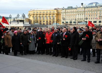 7 ноября Председатель ЦК КПРФ Г.А. Зюганов поздравил граждан страны с 94-й годовщиной Великого Октября, 70-летием исторического парада на Красной площади и возложил цветы к Мавзолею В.И. Ленина и могиле И.В. Сталина. Вместе с лидером российской Компартии на Красную площадь в этот день пришли активисты и сторонники КПРФ, москвичи и гости столицы.