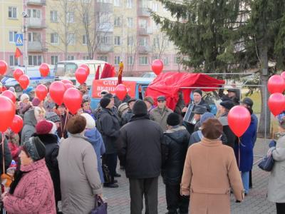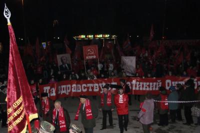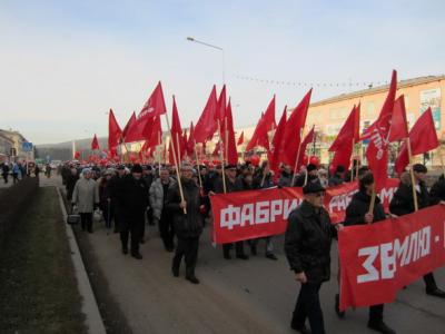 «Да, власть отняла у нас выходной праздничный день, но она не в силах вычеркнуть из памяти величие Октября», - отмечали участники митинга. Ораторы – кандидат в депутаты Государственной думы В. М. Видьманов, кандидаты в депутаты Законодательного собрания П. П. Медведев, Р. Т. Тамоев, Н. И. Михалева, И. В. Сорокин, Е. В. Медведева напомнили о завоеваниях Советской власти и выразили негодование по поводу того, что все социальные завоевания уничтожены за годы безумного капитализма российского разлива. Участники митинга единогласно приняли резолюцию.