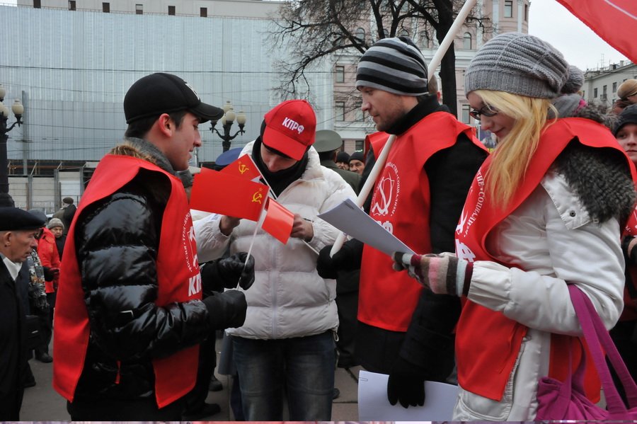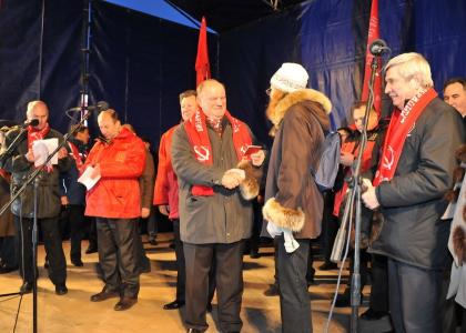 На трибуну поднялся руководитель фракции КПРФ в Московской городской Думе А.Е. Клычков. В своем выступлении он подчеркнул, что сегодня только одна партия не сходит с телевизионных экранов. Власть использует административный прессинг в регионах, чтобы достичь желаемых результатов на выборах. Наши противники обливают компартию грязью, подкупают студентов, ветеранов и другие категории граждан. Но коммунисты готовятся к решительным действиям, они намерены защитить свои голоса на выборах. Митингующие согласились с А.Е. Клычковым, что ни в коем случае нельзя позволить власти украсть наши голоса.