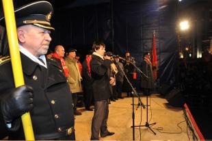 Валерий Федорович перебросил мостик от тех героических событий к нашему времени. По его мнению, слова И.В. Сталина не потеряли свою актуальность и в наши дни. «Мы верим в правоту нашего дела», «Нет места на нашей земли олигархам-упырям!», - сказал В.Ф. Рашкин.