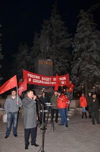 Мы, участники митинга в честь 94-й годовщины Великого Октября, обращаемся ко всем кому дорого будущее нашей страны – от нас всех зависит, сможем ли мы, сплотившись, добиться в ближайшее время, чтобы богатства России служили не кучке дельцов, а её народу – всем и каждому из россиян.