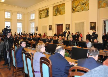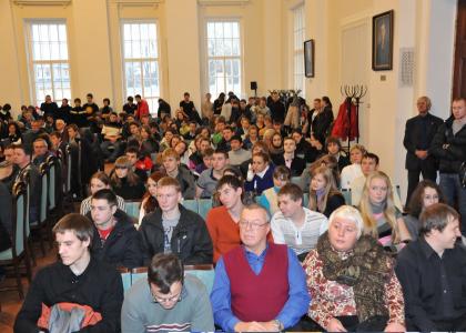 Визит Г.А. Зюганова в город на Неве начался с пресс-конференции в информационном агентстве «Росбалт». Она вызвала огромный интерес у представителей СМИ – зал, где проводился брифинг, был переполнен.