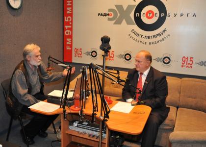 Вечером 11 ноября лидер КПРФ выступил в прямом эфире радиостанции «Эхо Москвы в Петербурге» и телеканала «Ваше общественное телевидение».