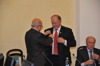 В завершении встречи под аплодисменты ее участников ректор университета В.А. Таймазов вручил Г.А. Зюганову памятную медаль им П.Ф. Лесгафта.