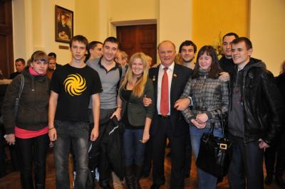 «Нам важен ваш дух и настрой на победу, - сказал Г.А. Зюганов, обращаясь к аудитории. – Мы - страна побед, и без них нам трудно выходить из кризиса».