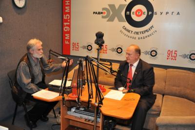 Вечером 11 ноября лидер КПРФ выступил в прямом эфире радиостанции «Эхо Москвы в Петербурге» и телеканала «Ваше общественное телевидение».