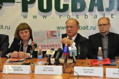 Рабочая часть визита Г.А. Зюганова в город на Неве начался с пресс-конференции в информационном агентстве «Росбалт». Она вызвала огромный интерес у представителей СМИ – зал, где проводился брифинг, был переполнен.