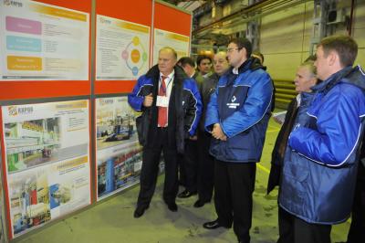 Во второй половине дня лидер КПРФ посетил легендарный Кировский (когда-то Путиловский) завод. Это предприятие, недавно отметившее 210-летие, славится не только своими трудовыми достижениями, но и революционными традициями. Из 700 петроградских рабочих, штурмовавших Зимний дворец в октябре 1917-го, 400 были путиловцами.