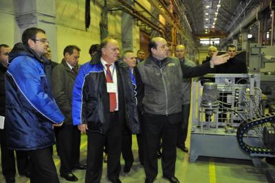 Г.А. Зюганов провел встречу с руководством завода – Генеральным директором Г.П. Семененко и Председателем Совета директоров К.В. Поляковым, а также с профсоюзным лидером кировчан С.М. Пантелеевым.