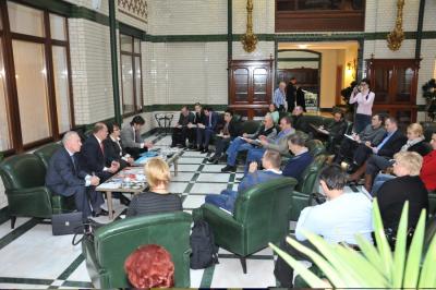 Затем состоялась встреча Г.А. Зюганова с губернатором Санкт-Петербурга Г.С. Полтавченко. На ней обсуждались темы социально-экономического положения города на Неве, перспективы его развития и вопросы предстоящих выборов.