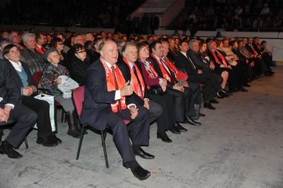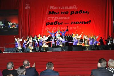 На сцену под громкие аплодисменты зрительного зала была приглашена команда КПРФ во главе с Председателем ЦК КПРФ Г.А. Зюгановым. Вместе с лидером российских коммунистов на сцену поднялись лауреат Нобелевской Премии, депутат Госдумы Ж.И. Алферов, дважды Герой Советского Союза, космонавт, депутат Госдумы С.Е. Савицкая, народный артист России и Украины, кинорежиссер В.В. Бортко, генерал В. Черкесов, первый секретарь городского комитета КПРФ Санкт-Петербурга, депутат Госдумы С.М. Сокол, первый секретарь Ленинградского областного комитета КПРФ, депутат областного законодательного собрания Р.Г. Илларионова и другие товарищи.
