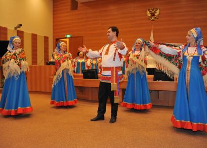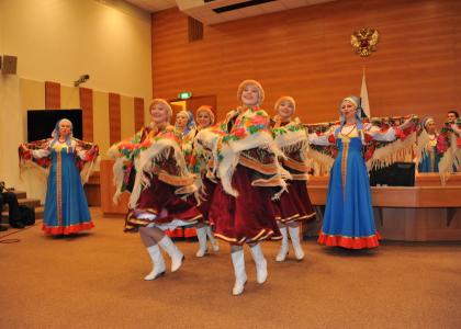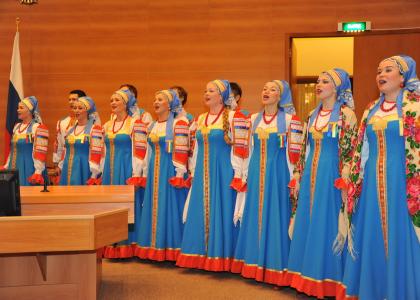 В зале звучали стихи Михаила Васильевича Ломоносова, демонстрировались посвященные ему документальные фильмы. В завершении научно-практической конференции перед ее участниками выступил Академический хор «Песни России». Художественный руководитель и главный дирижер коллектива - заслуженная артистка России Е.Н. Кутузова.