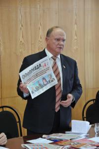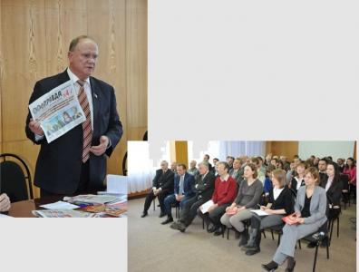 На встрече с Г.А. Зюгановым присутствовали представители коллективов пяти научно-исследовательских институтов, а также сотрудники средств массовой информации.
