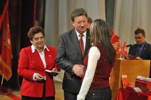 В 16 часов делегация депутатов-коммунистов во главе с Владимиром Кашиным провела встречу с избирателями в ДК «Октябрь» (г.Волжский). На ней присутствовали свыше 1200 человек. По традиции, в начале мероприятия состоялось вручение партийных и комсомольских билетов (50 человек).