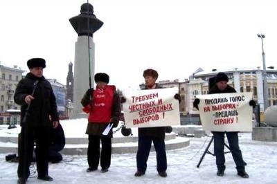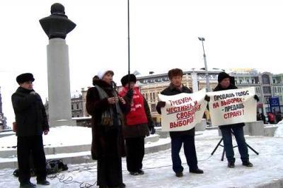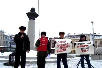 В Казани около памятника Л.Н.Гумилёву прошёл предвыборный митинг КПРФ. Во время акции звучали лозунги: «Мы – за честные выборы!», «Продашь голос на выборах – предашь страну!», и «4 декабря – все на выборы!».