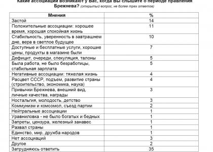 Какие ассоциации возникают у Вас, когда Вы слышите о периоде правления Брежнева? (открытый вопрос, не более трех ответов)