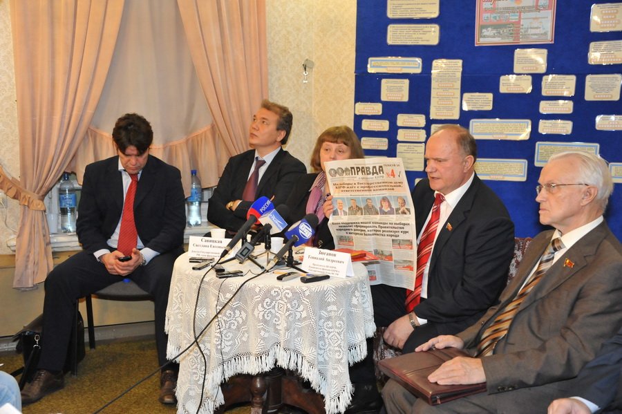 Отвечая на вопросы журналистов, Г.А. Зюганов рассказал о многочисленных случаях нарушения законодательства, которые допускают власть и «Единая Россия». Так, в Самарской области активистов КПРФ избивают, а на кандидатов от Компартии обрушивается грязный вал клеветы. По всей стране появляются подметные газеты. Вновь на телеэкранах засветился телекиллер Караулов, который орет: «Караул!» В свое время он беспощадно травил Виктора Ивановича Илюхина, преждевременно ушедшего из жизни. «Караулов за это еще ответит!» - подчеркнул Г.А. Зюганов. Он выразил уверенность в том, что получит по заслугам и руководство «Почты России», втащившее свою организацию в рублевский «народный фронт». В результате, сейчас почтальонов заставляют распространять по ящикам грязные антикоммунистические пасквили.