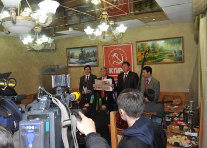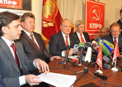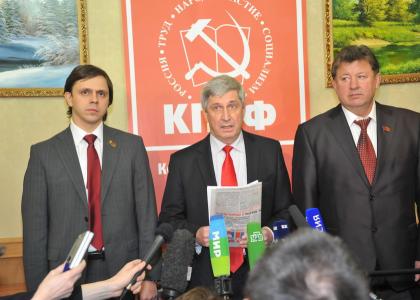 В пресс-конференции также приняли участие Первый заместитель Председателя ЦК КПРФ И.И. Мельников, заместитель Председателя ЦК КПРФ В.И. Кашин, члены Президиума, секретари ЦК КПРФ С.П. Обухов и В.Ф. Рашкин, заместитель руководителя юридической службы ЦК КПРФ А.Е. Клычков.