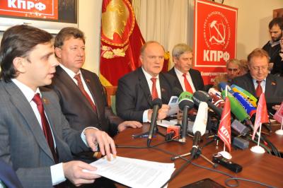 В пресс-конференции также приняли участие Первый заместитель Председателя ЦК КПРФ И.И. Мельников, заместитель Председателя ЦК КПРФ В.И. Кашин, члены Президиума, секретари ЦК КПРФ С.П. Обухов и В.Ф. Рашкин, заместитель руководителя юридической службы ЦК КПРФ А.Е. Клычков.