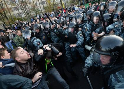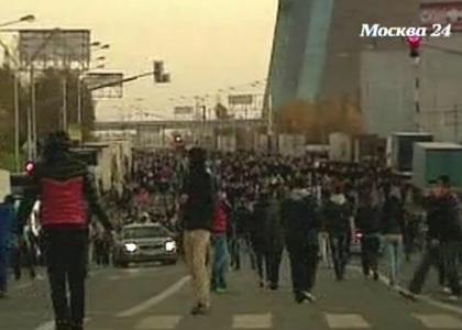 Хроника событий. «Москва, 13 октября. В столичном районе Западное Бирюлёво на месте «народного схода» начались беспорядки. В акции протеста принимают участие около трех тысяч человек. На месте происшествия стянуты бойцы ОМОНа», - передает «МИР 24». - «Огромная толпа движется к овощной базе, где работают мигранты. Полиция пытается препятствовать движению. Началась драка. В ход пустили дымовые шашки. Также на место прибыли пожарные машины, людей хотят разгонять водой.