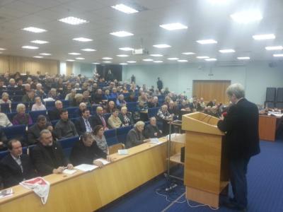 Доктор психологических наук, профессор, директор НИИКСИ Валентин Евгеньевич Семенов привел четкие научные данные. Согласно результатам масштабного социологического исследования 85% респондентов считает советскую эпоху самой благоприятным для жизни временем. При этом нынешнее время таким считает только 7% опрошенных, а царскую Россию – 13%. Да и межнациональные проблемы в СССР были практически решены, - заключил профессор Семенов, и это – факт, нравится он кому-то или нет. Приведенная Валентином Евгеньевичем информация вызвала в зале живой интерес и была встречена аплодисментами.