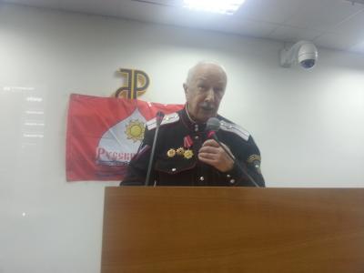 Представитель казачества Санкт-Петербурга Алексей Алексеевич Капустин сразу же подчеркнул, Русь-Россия – многонациональная страна с момента своего возникновения в IX веке от Р.Х. И поэтому без дружбы народов наша мысль немыслима. Но каждый гражданин России должен уважать наши базовые ценности и традиции, идущие из глубины веков, жестко заявил он. Россия – семья народов, в которой старшим братом является русский народ, и это понимание было базовым в советское время. Казачество претендует на то, чтобы вмешиваться в жизнь тех или иных диаспор или землячеств, но требует и будет требовать такого порядка, который соответствуют нормальным, доброжелательным, ладным правилам совместного общежития и не поступится своей верой.
