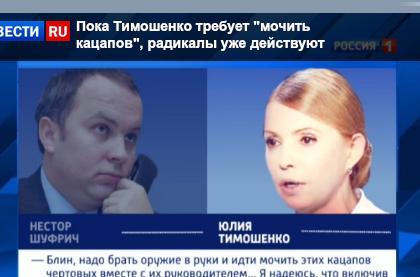 В Интернет попала скандальная запись телефонного разговора Тимошенко с депутатом Шуфричем. В котором Тимошенко предлагает, цитата, "мочить кацапов из атомного оружия".